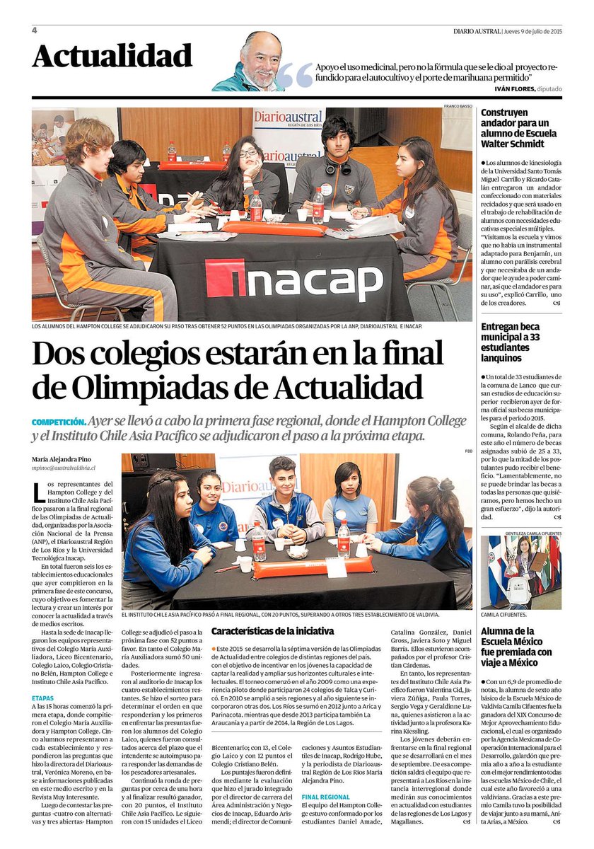 Hamton College e Instituto Chile Asia Pacífico de Valdivia fueron los ganadores del día de ayer en las Olimpiadas de Actualidad